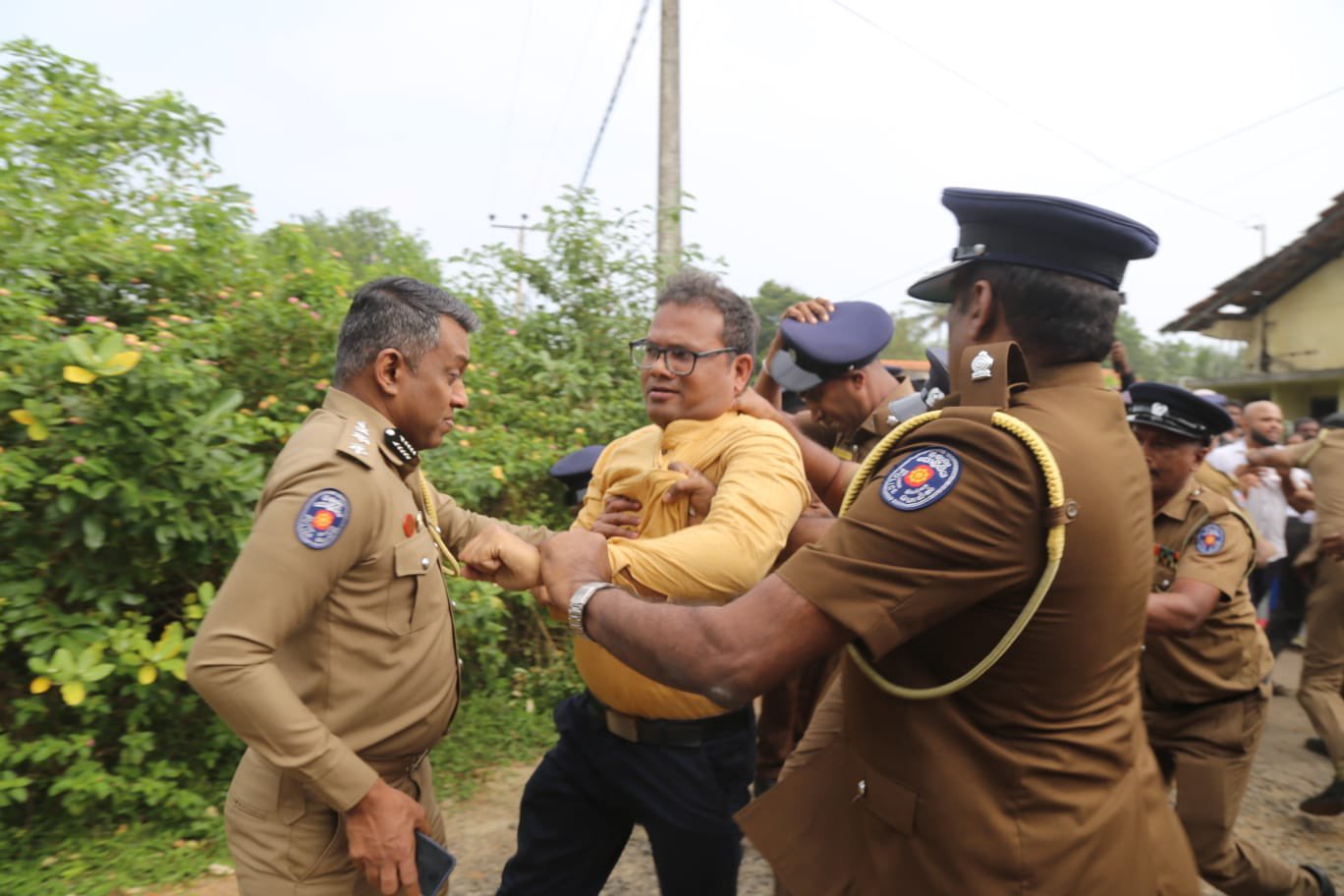 Tensions escalated after police accused protesters of blocking the road, leading to clashes and the arrest of five Tamils, including prominent civil society leader Velan Swamigal and Valikamam East Divisional Council Chairman & TELO Executive committee member Thiyagaraja Nirosh, both of whom were attacked and violently handled by Sri Lankan police officers as they were pushed into the police car. The other three Tamils that were arrested were members of Valikamam North Divisional Council.