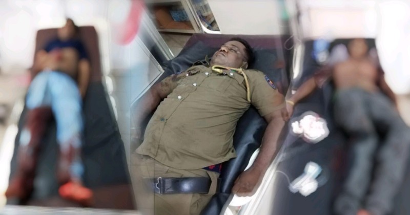 The injured included the OIC of the Thirukkovil police station and they were all admitted to the Thirukkovil and Akkarepattu hospitals.